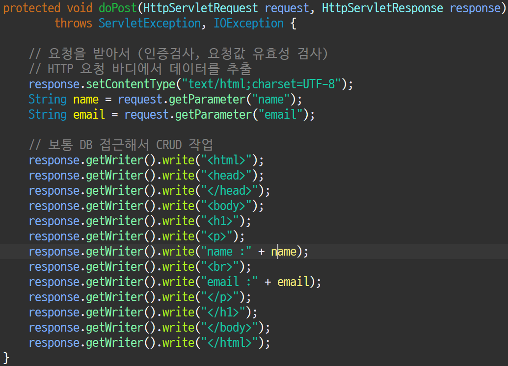 POST 방식은 주로 데이터를 서버에 전송하거나 서버에서 데이터 처리를 요청할 때 사용됩니다.