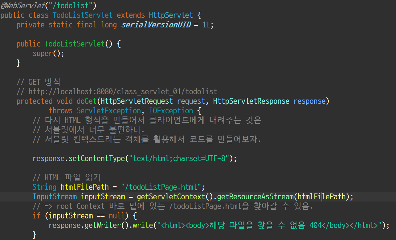 서블릿 컨텍스트를 활용하여 서블릿 클래스 작성