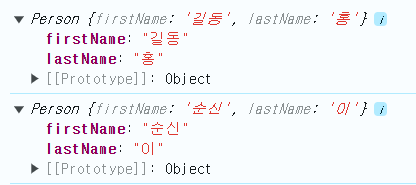 person.sayHello(); // function() 메서드 내 코드 만 출력