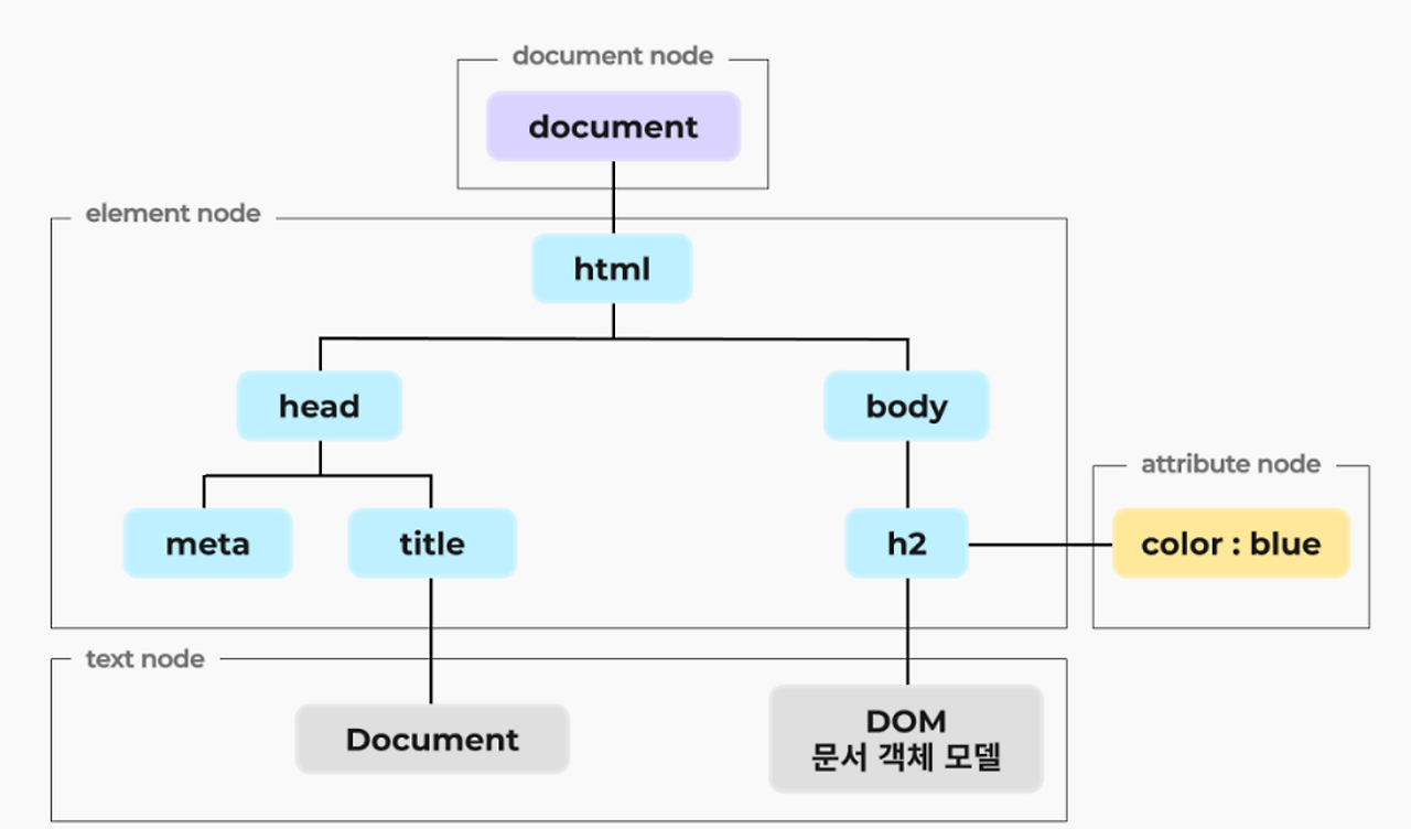 document 노드가 최상위 노드가 되고, 밑으로 element 노드가 오며,
