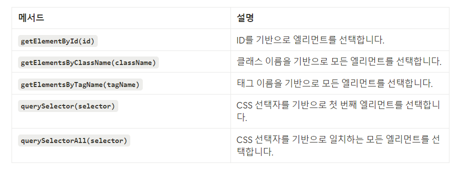 이 4가지 노드들이 존재함으로써 스크립팅 언어가 웹페이지에 접근하고 조작할 수 있게 됩니다.