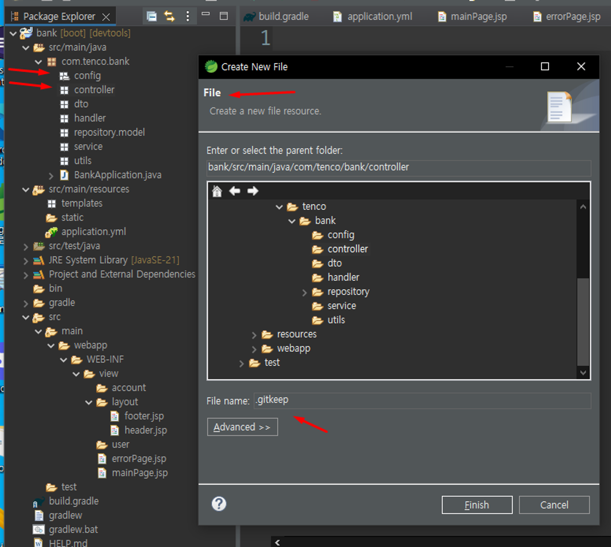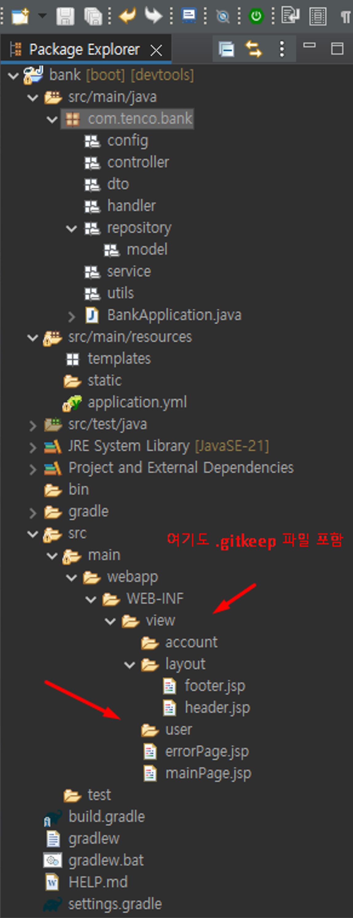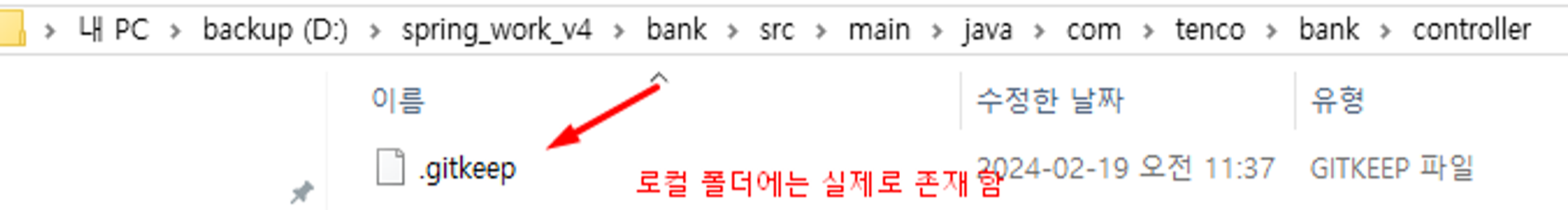 .gitkeep 처럼 숨김 파일을 생성해서 약간 꼼수를 부려 비어 있는 폴더 및 패키지를 commit 및 push 해 봅시다.