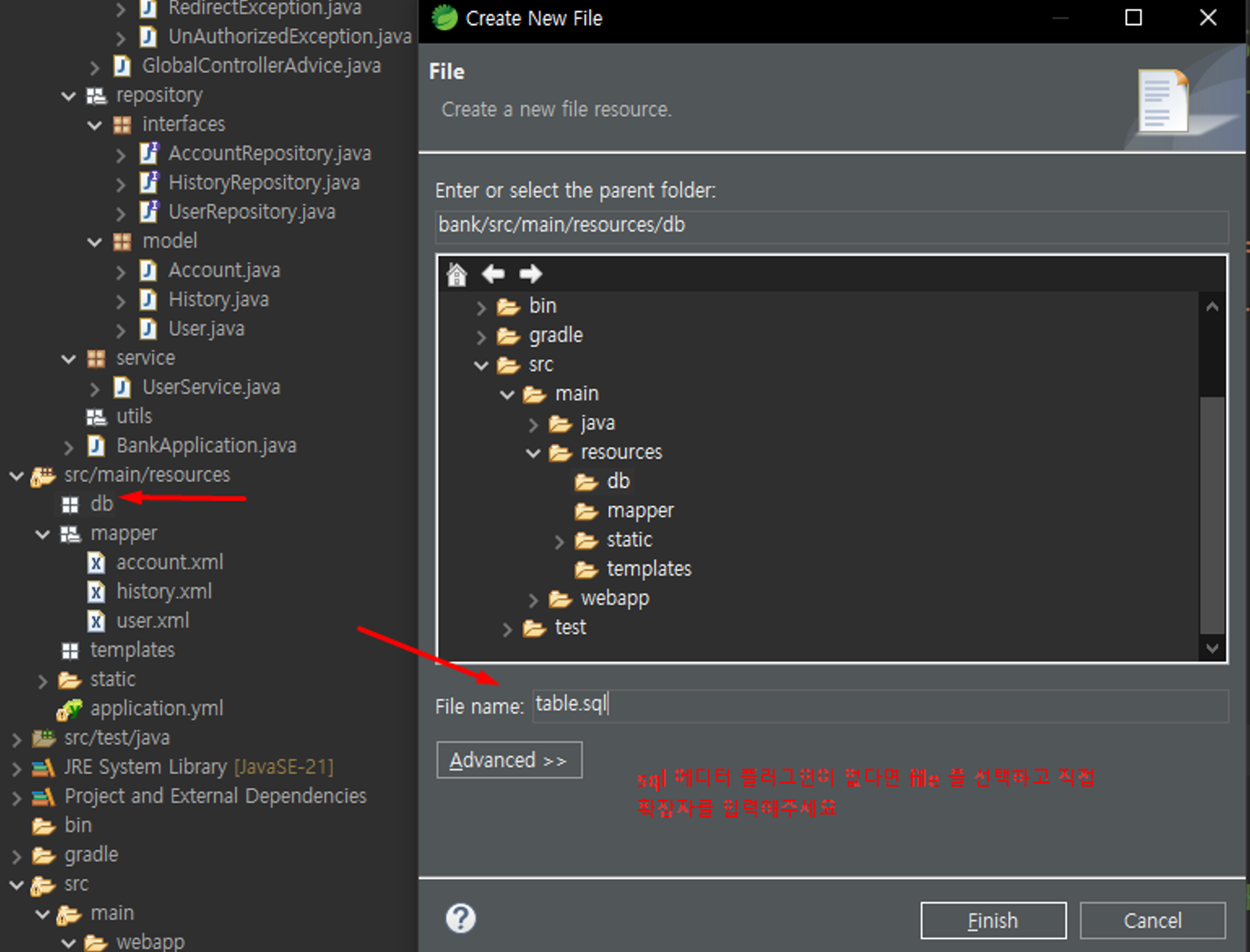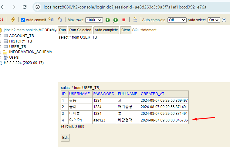 url: jdbc:h2:mem:bankdb;MODE=MySQL #데이터 베이스 연결을 위한 URL을 설정 합니다.