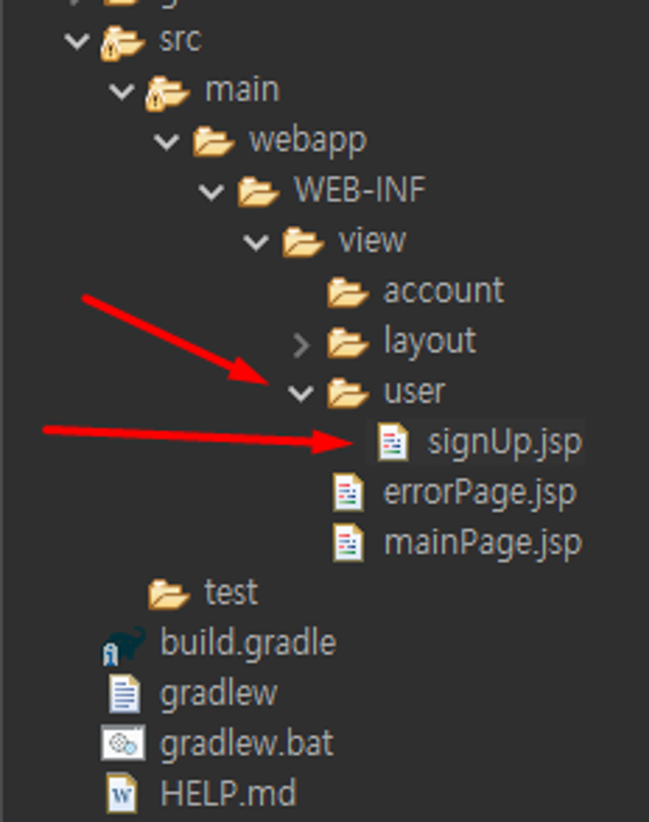1. mainPage.jsp 파일에서 코드를 복사후에 signUp.jsp 파일로 붙여 넣기 합니다.