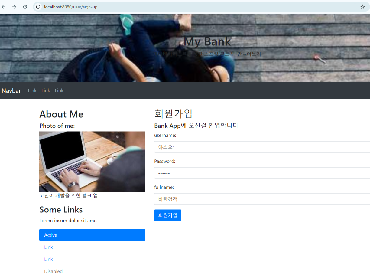 * 주소 설계 : http://localhost:8080/user/sign-up