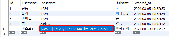 // 객체 안에 사용자의 password가 존재한다.(암호화 되어 있는 값)