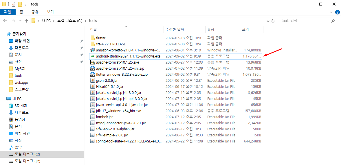 다운로드 받은 zip을 c:\tools 폴더로 이동 후 압축 풀기