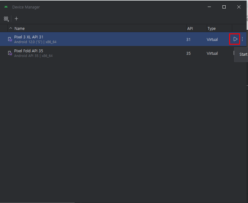 More Actions > Virtual Device Manager