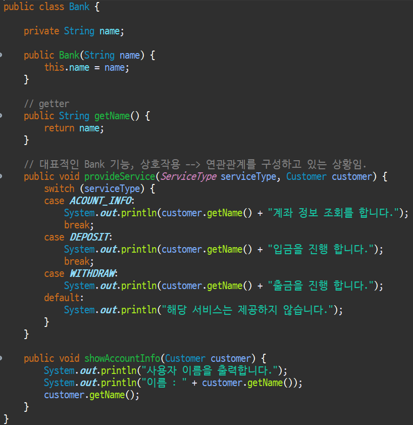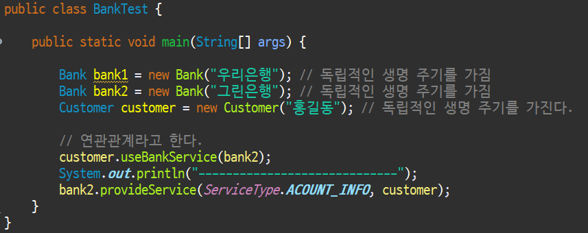 한 클래스의 객체가 다른 클래스의 객체와 상호작용을 하지만,