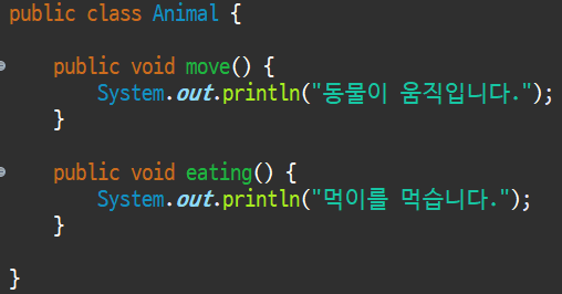 - 그러나, 자식 클래스에서 오버라이딩된 메소드가 있다면 부모 메서드 대신에 오버라이딩된 메서드가 호출된다.(다형성)