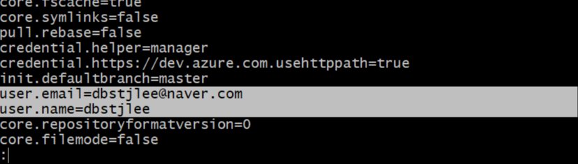 git config --list 입력 시 이메일 주소와 닉네임이 입력되어 있다.