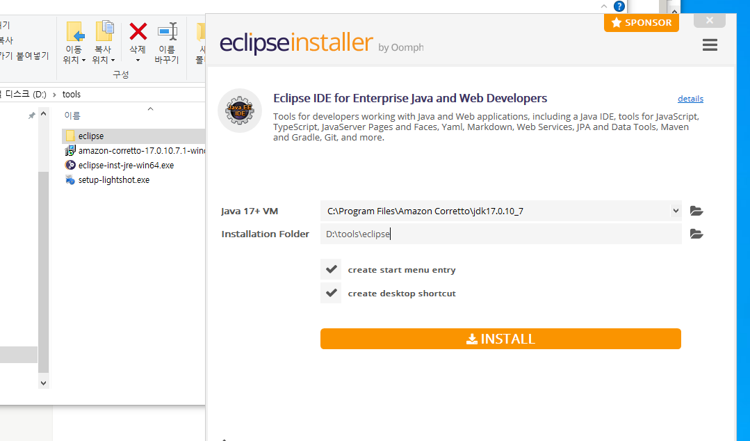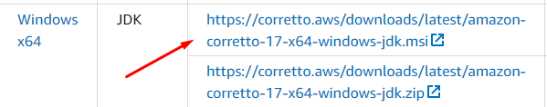 반드시 JDK(Java Development Kit) 17버전 먼저 설치(AWS 홈페이지 > corretto 17버전 다운로드 > 윈도우 x64bit )