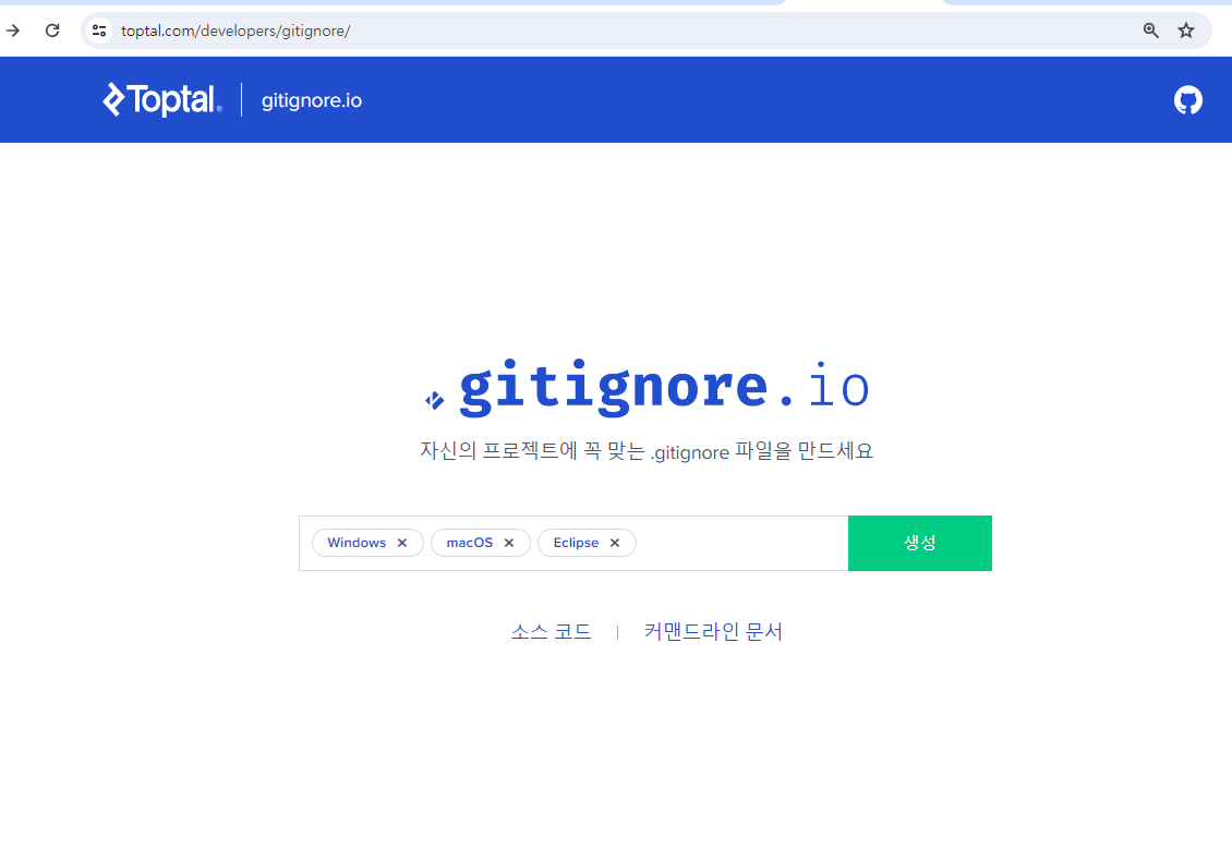 3. 구글에 gitignore.io 를 검색하여 홈페이지에 위와 같은 키워드를 입력한다.