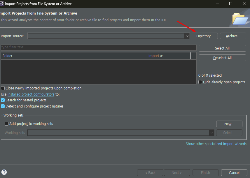 7. Directory를 눌러 파일을 찾아서 불러낸다.