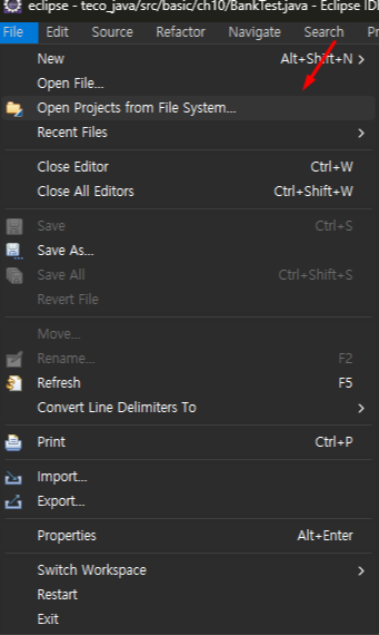 8. 이와 같은 과정을 거치면 이클립스에서 패키지를 열 수 있다.