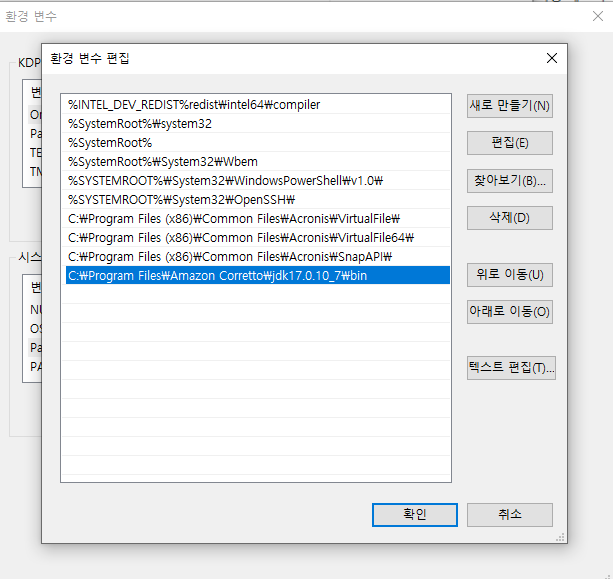 * 파일 경로 잘못 됐을 시 : 시스템 변수> path > 새로 만들기 > 파일 경로 찾은 후 복사한 파일 경로 붙여넣기