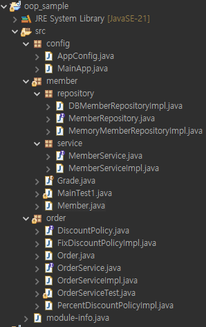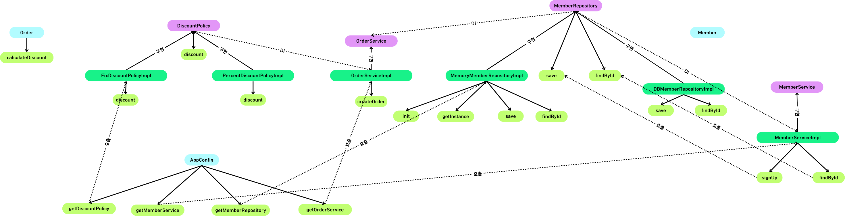 // 2. OrderService orderService1 = new OrderServiceImpl(memberRepository, percentDiscountPolicy);