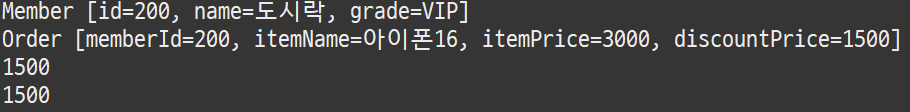 OrderService orderService1 = new OrderServiceImpl(memberRepository, fixDiscountPolicy); 고정 금액 할인 코드로,