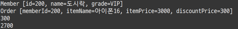 int discountPrice = discountPolicy.discount(member, itemPrice); // 할인된 금액