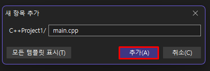 작업할 파일명을 입력한 후 추가 버튼을 누른다.