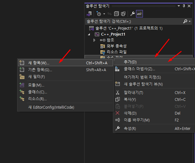 소스 파일(오른쪽 마우스 클릭) > 추가 > 새 항목을 선택하여