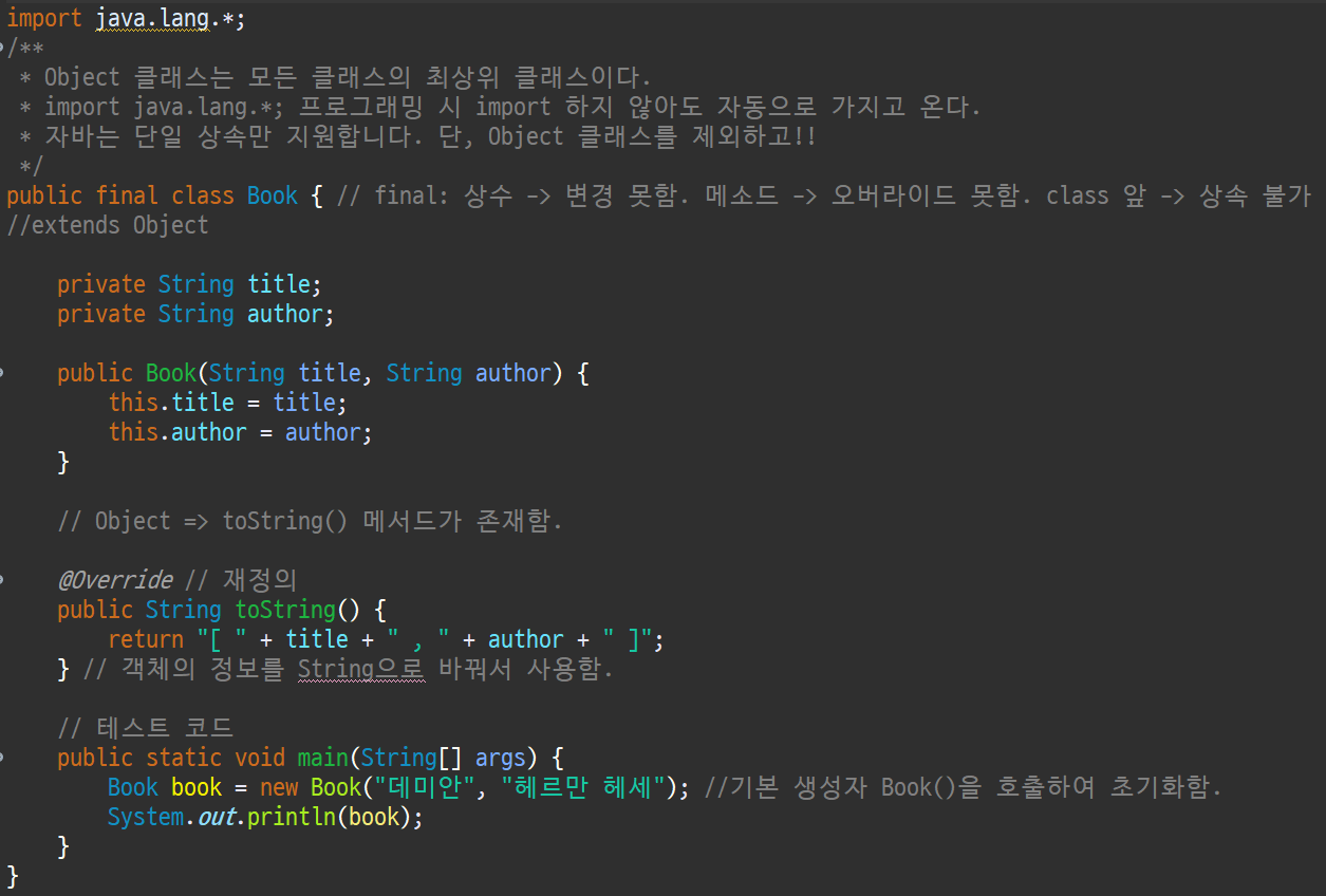 - Object 클래스는 java.lang 패키지 안에 존재한다.