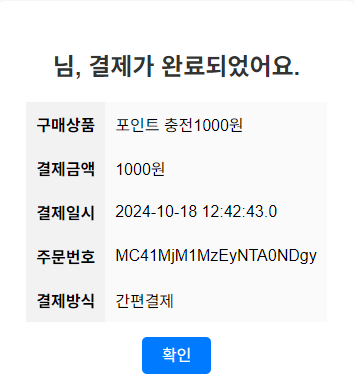 <h1>{{user.username}}님, 결제가 완료되었어요.</h1>