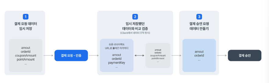 // orderId, paymentKey, amount를 서버에 저장해야 함.