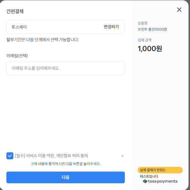 사용자가 포인트를 충전하기 위해 결제하는 기능을 만들 예정이다.