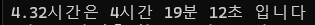 cout << "4.32시간은 " << hh << "시간 " << mm << "분 " << ss << "초 입니다";
