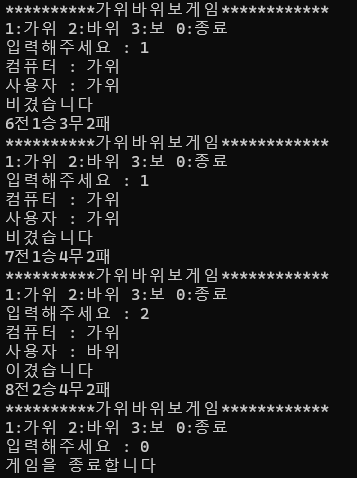 // 사용자가 종료할 때까지 가위바위보를 함(무한 반복)
