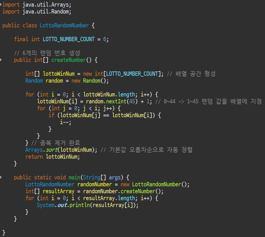 랜덤으로 생성할 번호를 만들기 위한 class 생성한다.