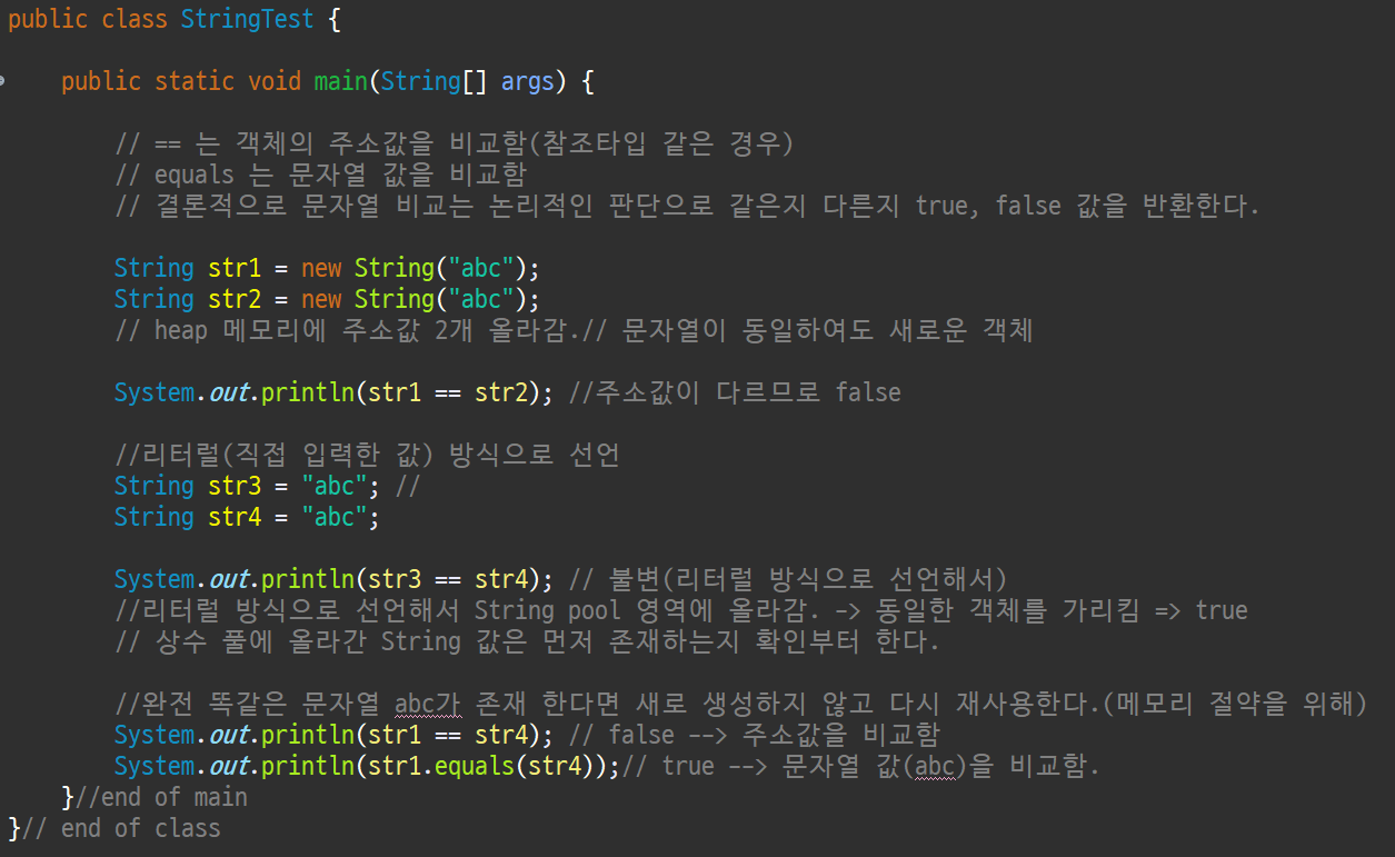 heap 메모리는 생성될 때마다 다른 주소 값을 가지지만, 상수 풀의 문자열은 모두 같은 주소 값을 가진다.