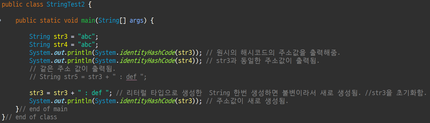=> 리터럴 방식으로 한 번 생성된 String 은 불변이므로 계속 새로 생겨진다.