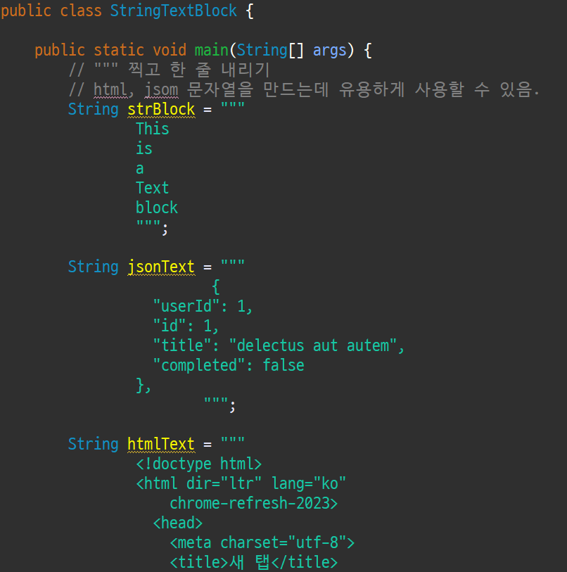 문자열을 """ """ 사이에 이어서 만들 수 있다.