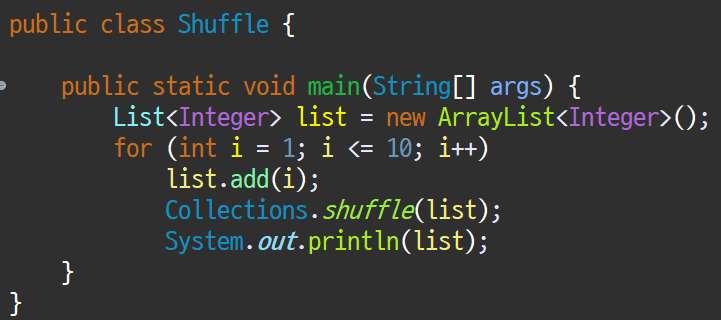 리스트에 존재하는 정렬을 파괴하여 원소들의 순서를 랜덤하게 만든다.