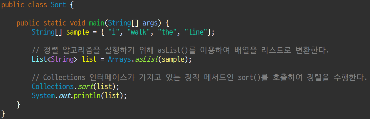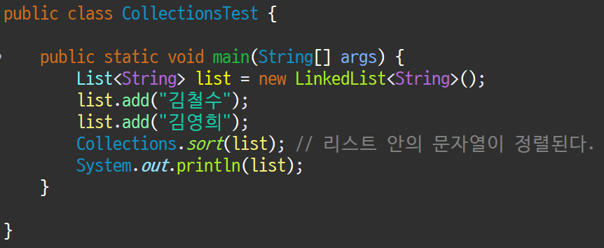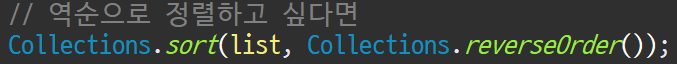 Collections 클래스의 sort() 메서드는 List 인터페이스를 구현하는 컬렉션에 대해 정렬을 수행한다.