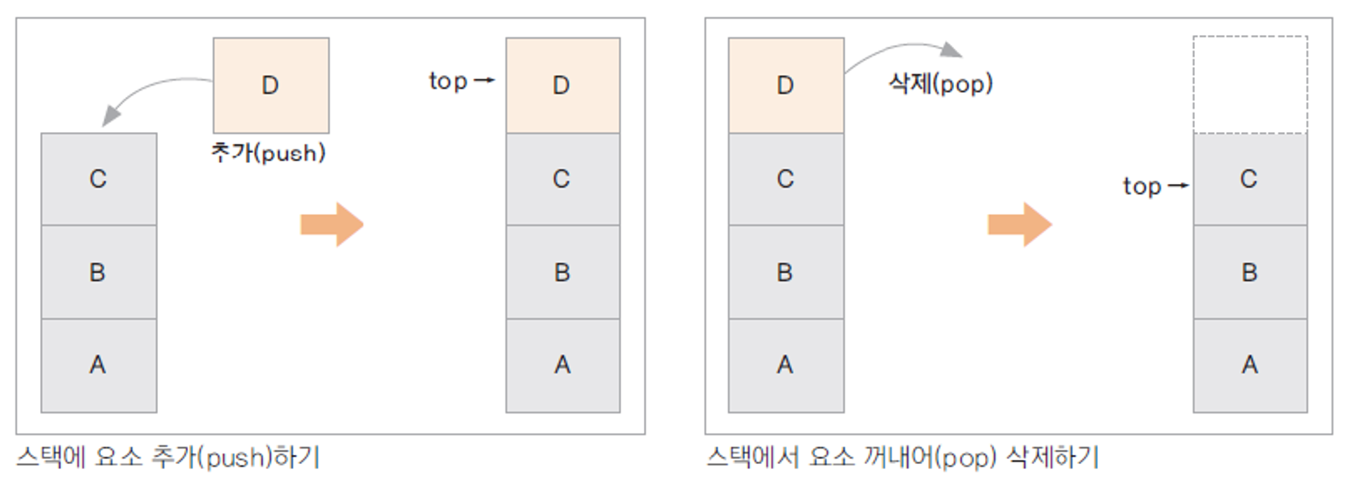 스택(stack) : 가장 나중에 입력된 자료가 가장 먼저 출력되는 자료구조(Last In First Out; LIFO)