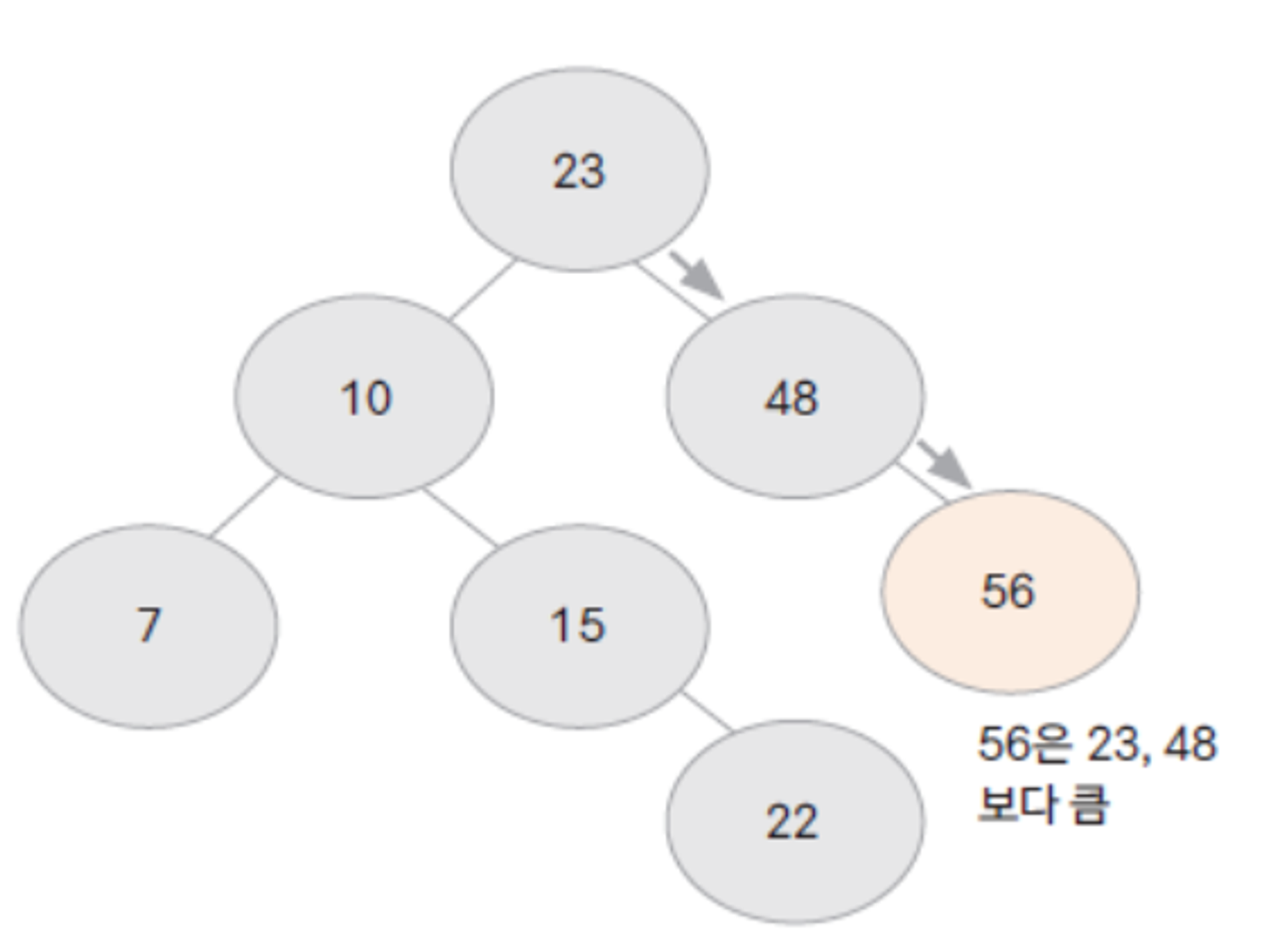 위 그림 참고 → 7 , 10, 15, 22, 23, 46, 56 (작은 값에서 큰 값으로 정렬됨)