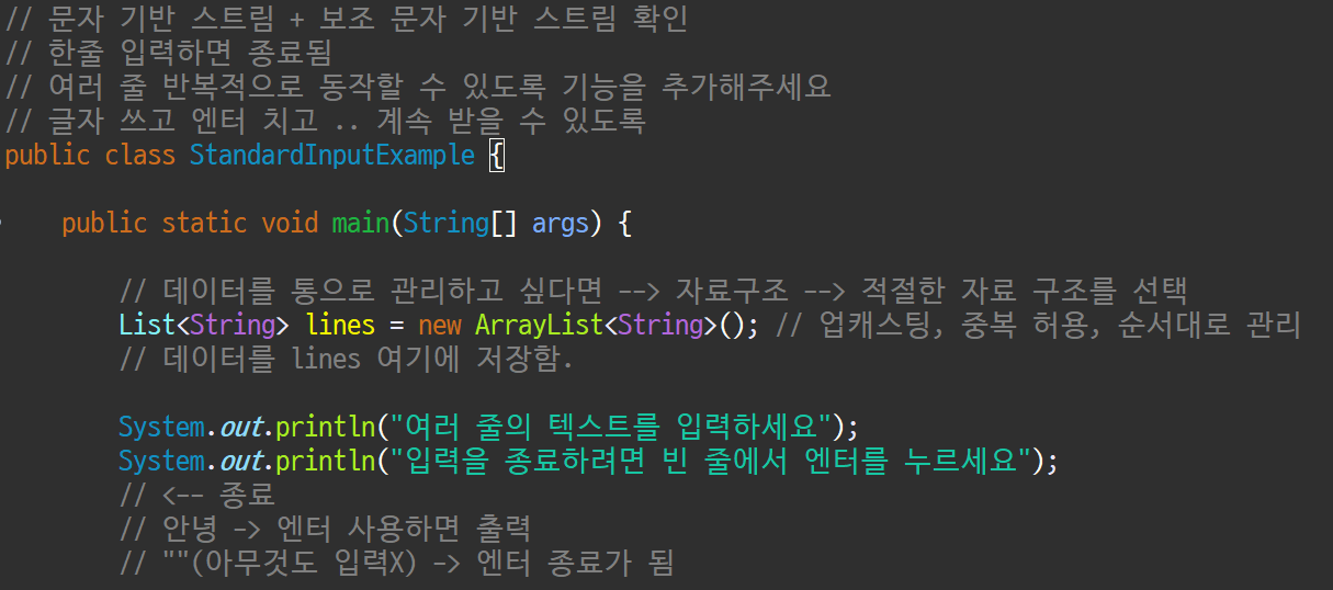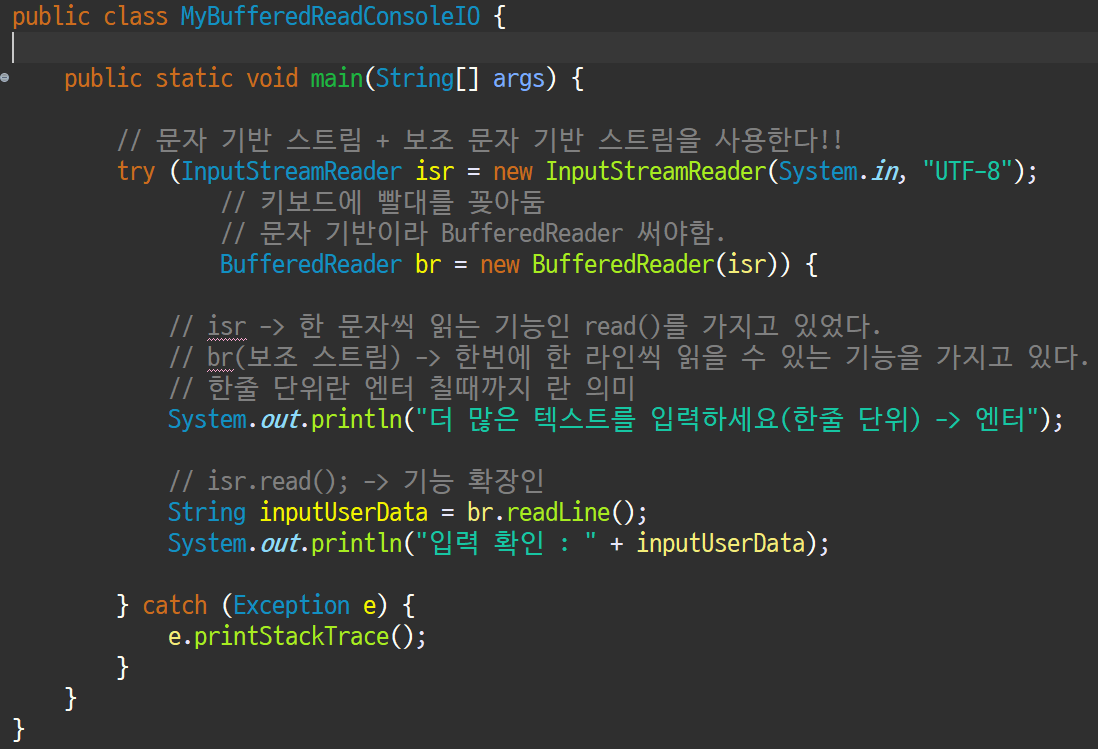 3. 가독성 및 편의성 : 문자 데이터를 읽고 쓰는 코드를 작성할 때, 문자 기반 스트림을 사용하면 바이트를 직접 처리하는 것보다 더 직관적이고 오류가 적은 코드를 작성할 수 있다.