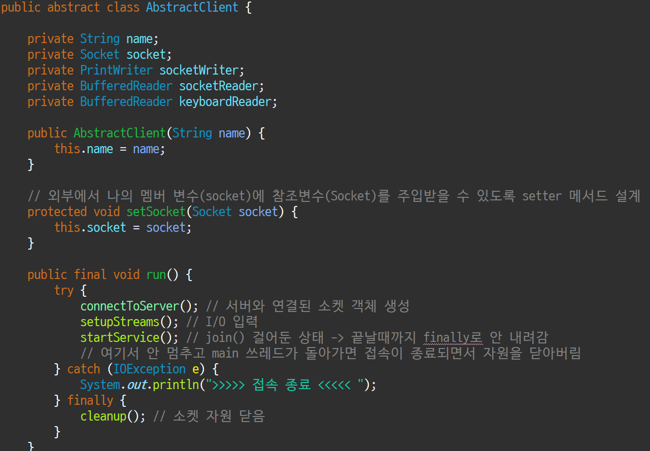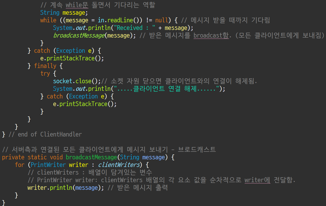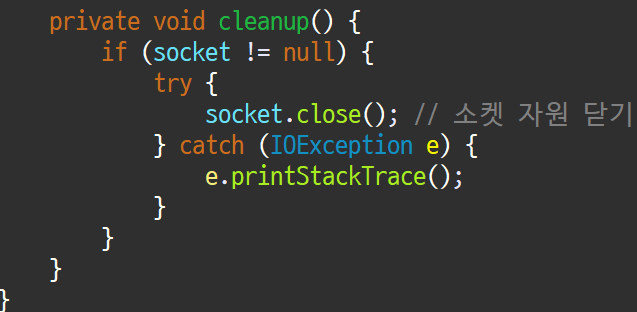- 서버는 연결된 클라이언트 소켓을 관리하고, 클라이언트가 연결을 끊을 때 자원을 적절히 해제해야 합니다.