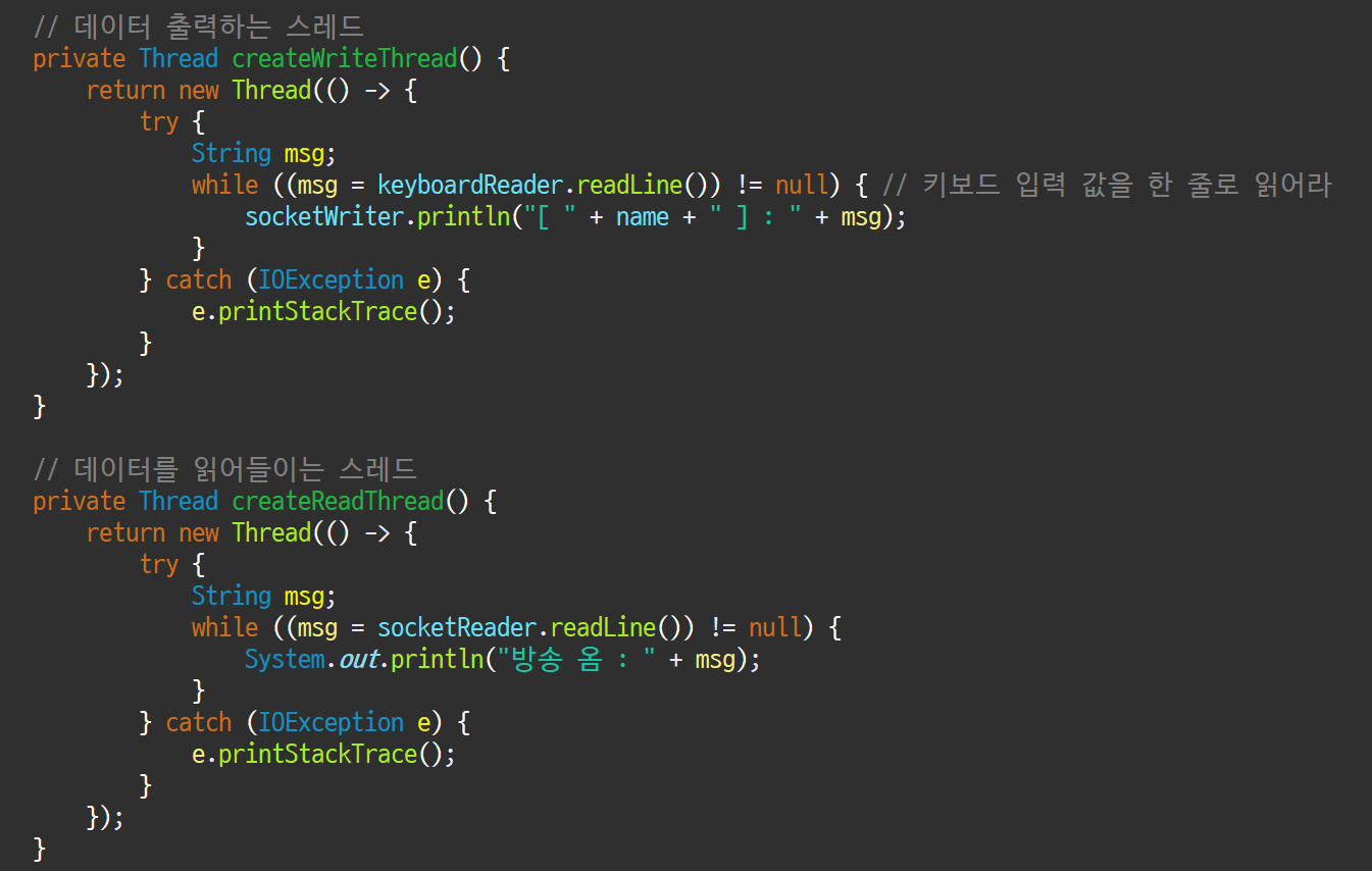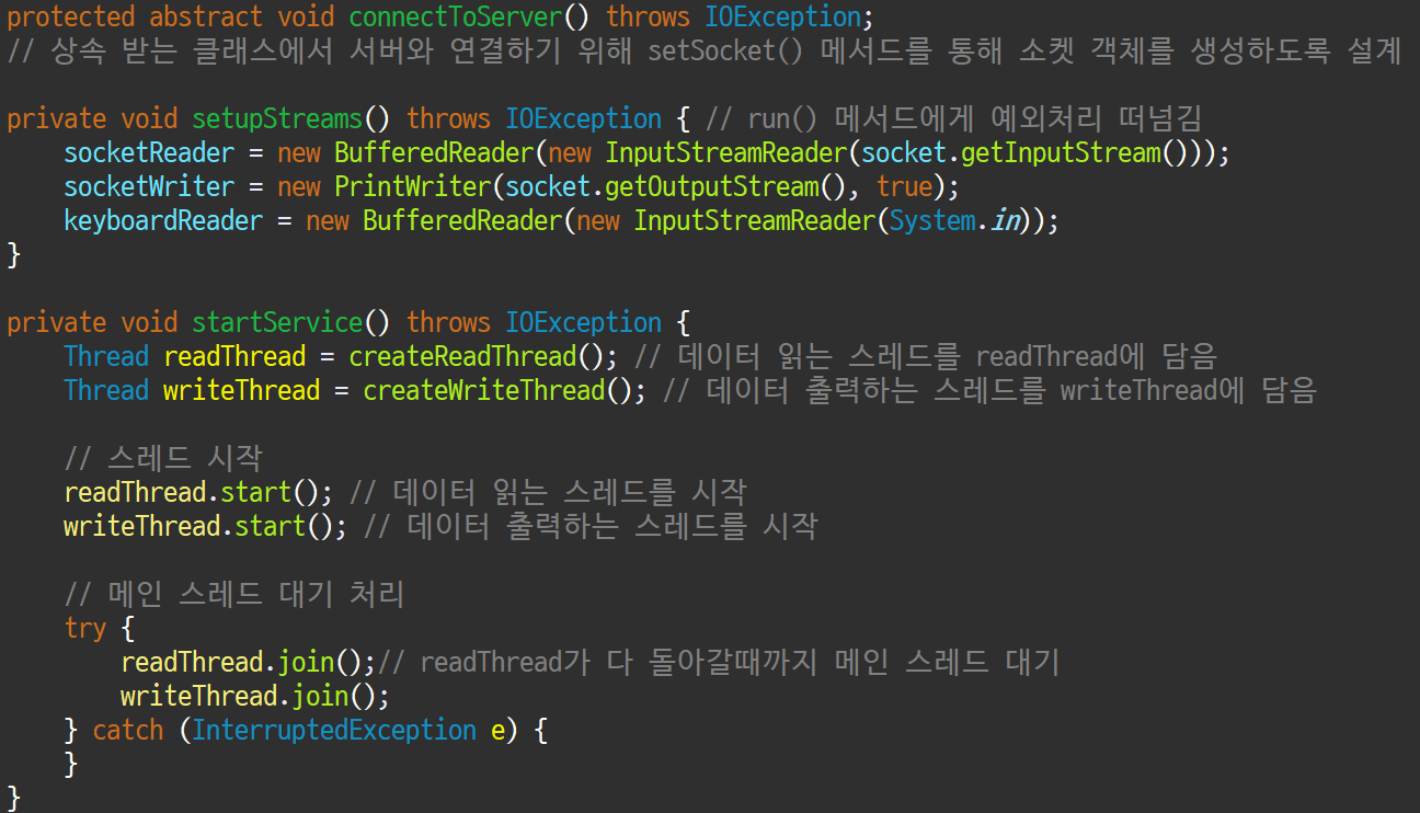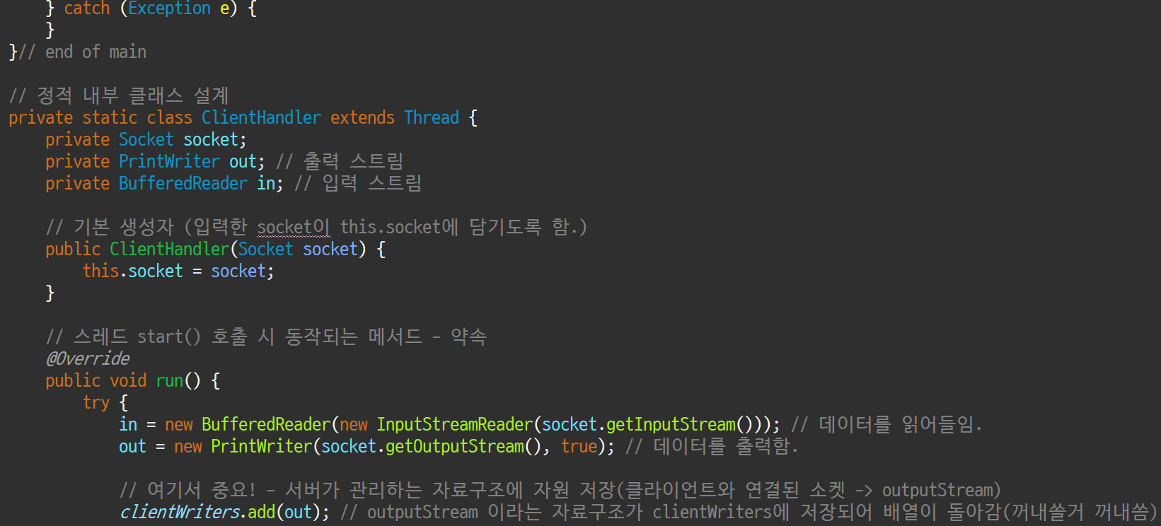 - 각 클라이언트는 서버와의 통신을 처리하는 자체 스레드를 가집니다.