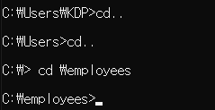 4. cd.. 을 입력하여 경로를 employees 로 이동한다.