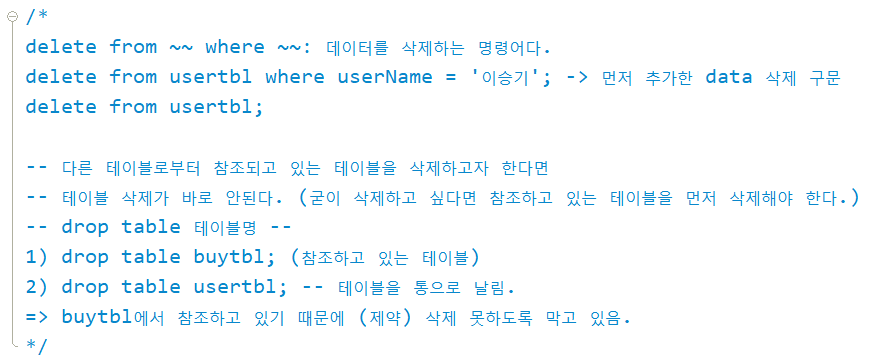 구문 삭제하는 방법과 테이블 삭제하는 방법