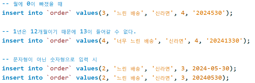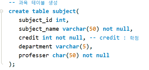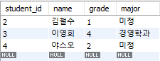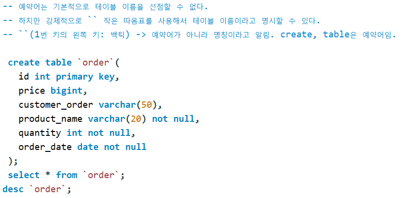 - 날짜/시간 타입: DATE, TIME, DATETIME, TIMESTAMP 등