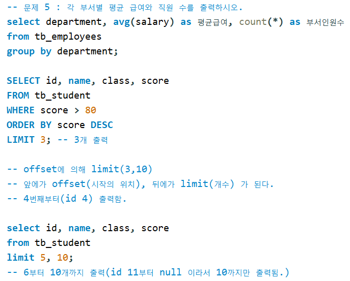 - 집계 함수와 함께 사용되는 상수는 GROUP BY 절에 추가하지 않아도 된다. (많이 실수 하는 부분)